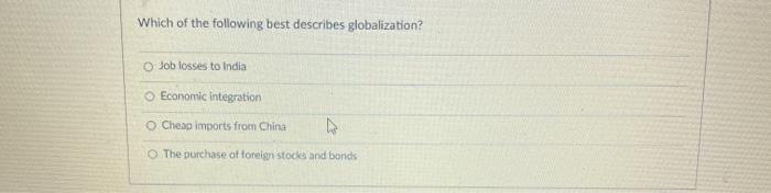 Solved Which Of The Following Best Describes Globalization Chegg Com